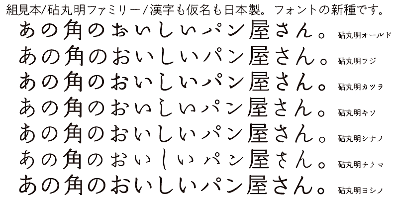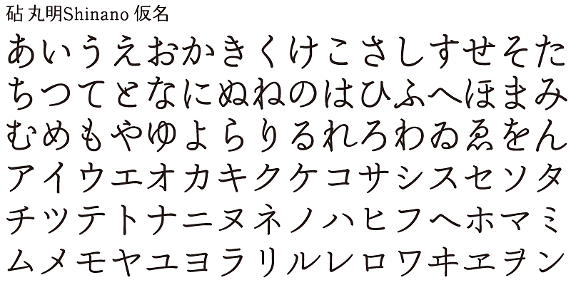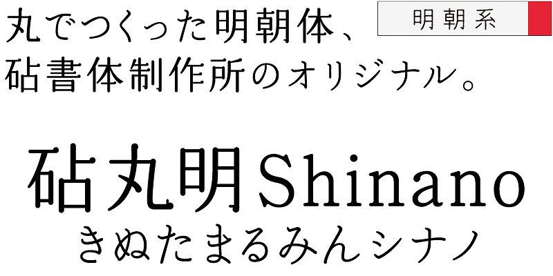 The kana character design of MaruminShinano is based on a brush-script style from the age of hot metal type, but adds a touch of elegance in the movement of brush strokes, as well as a brilliantly polished texture. This typeface fits a wide range of purposes.