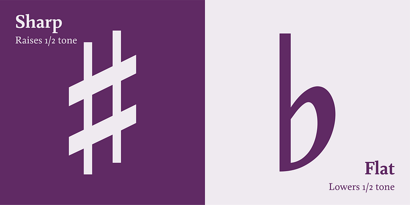 A unique feature of Merwede is the full set of musical chord symbols, which Schulz finds unfavourably designed in almost all music books. ‘Why are the sharp, flat and all necessary chord symbols missing in typefaces? Almost all music books are miserable shaped when it comes to these symbols.’