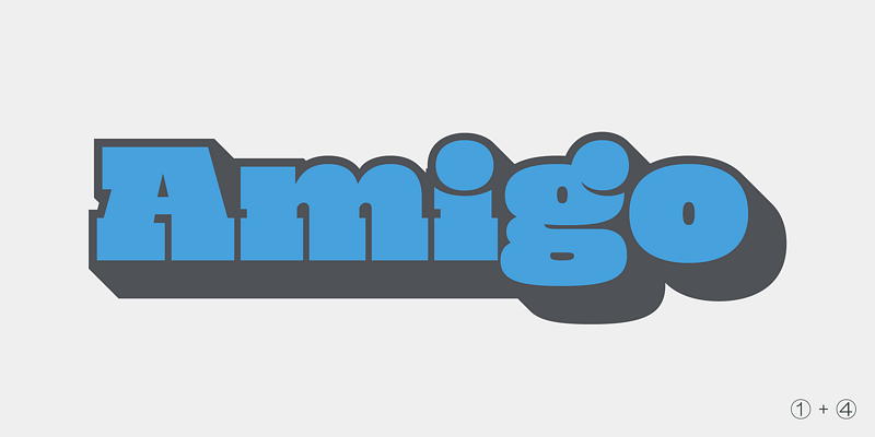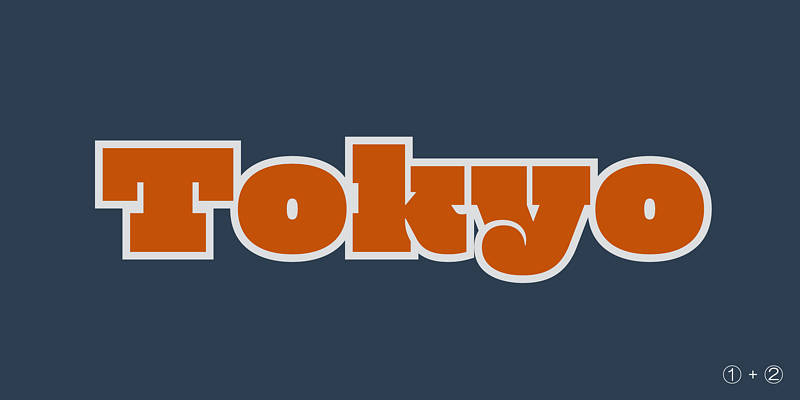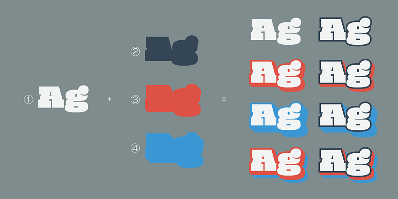 4 Layered color font! Simply, Stack same text with each styles in the same position. Mighty Slab One can also be used independently. Super big x-height for more visual conspicuousness.