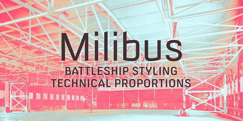 Milibus is a nontraditional technical sans-serif typeface available in 3 weights and italics.