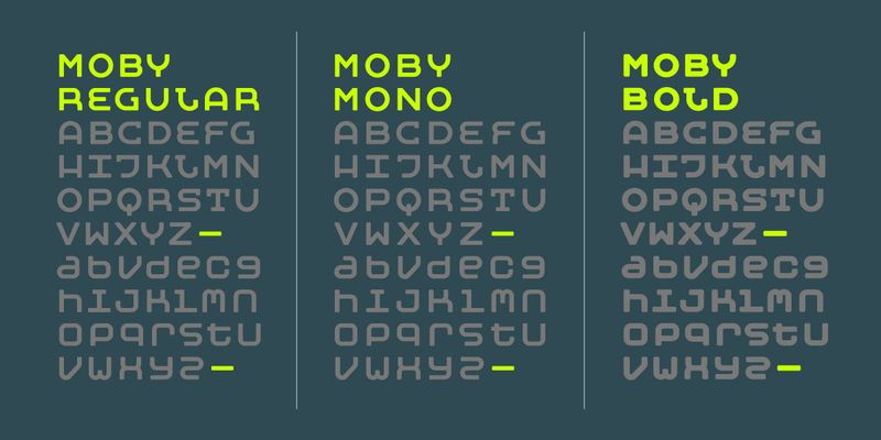 Moby was created in 2002 by Felix Braden as a corporate and headline font for the Cologne based design bureau Glashaus. The letterforms are insprired by the logotype of the legendary Bauhaus School in Weimar (Germany) and are created on a 5 x 5 Pixel grid. The family comes with 3 Fonts: Moby Bold, Regular and Monospaced.