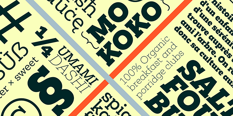 Mokoko combines a timeless look with progressive technology for a family that is both functional and characterful. Its extended range can support everything from long-form text to bold displays.