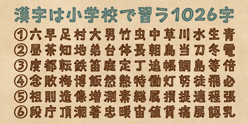 This font is a kana + kanji subset font. It mainly includes basic kana characters, alphanumeric characters, and only the 1,026 kanji specified in the Ministry of Education’s Grade-by-Grade Kanji Allocation Table.