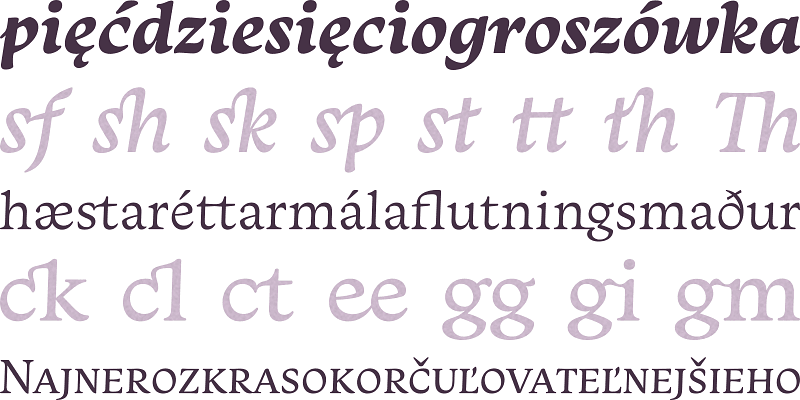 Fonts in the Adobe Fonts library include support for many different languages, OpenType features, and typographic styles.
