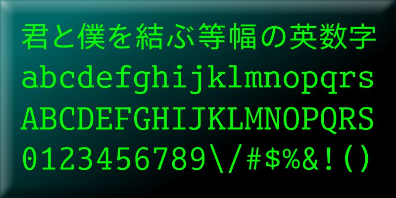 MonopinJ-Regular is a Japanese font meant to be used for displaying source code in computer programming.