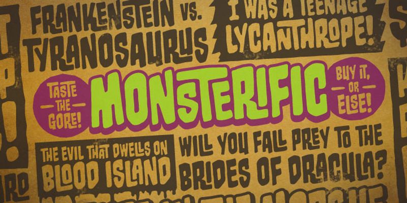 Monsterific BB was inspired by classic 70s horror magazine titles, and features a large complement of European characters and over 160 Opentype Autoligatures! Perfect for Halloween or any spooky time of the year!