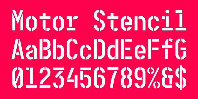 Motor Normal and Motor Stencil are monospaced fonts with technical charm. In its monotone and reliable rhythm it tends towards condensed proportions reminding of old poster fonts. Its origins lie in the typeface Mono45 Headline and the manually stamped tickets found at the University-hospital in Zurich.