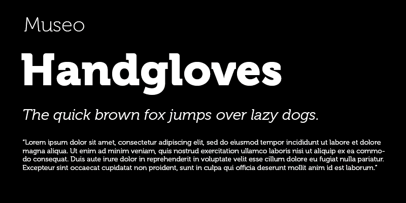 MUSEO, it all started with my love for “U”. This uppercase letter U came to me as an image in a daydream with both stems bend into semi-slab serifs. Museo is a remarkable semi-serif family with simple, open forms and highly original details.