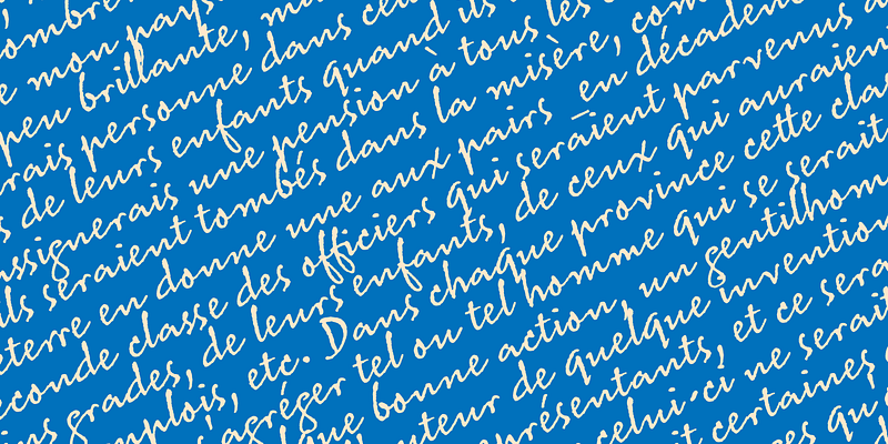 Mark van Bronkhorst’s MVB Sacre Bleu was inspired by an example of French handwriting from the 1930s. With a goal to keep the script as authentic as possible, the font includes a number of ligatures to avoid letterform repetition.