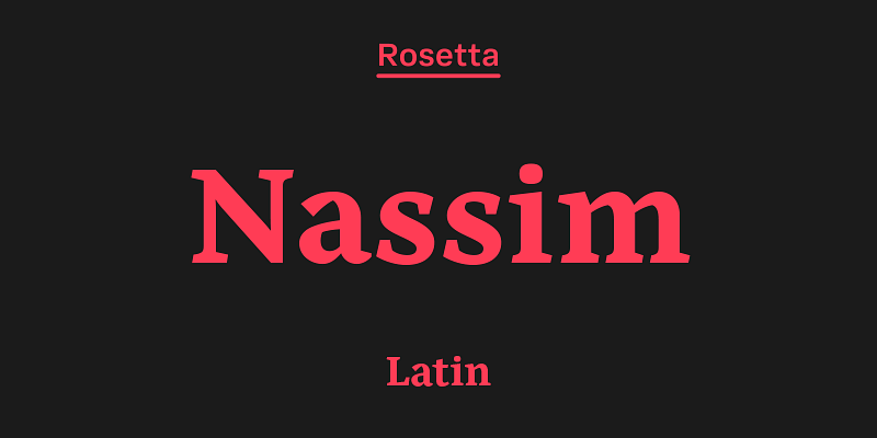 Nassim Latin is a proven workhorse at multilingual text-setting, bringing a lively texture and balanced rhythm to a wide range of contemporary applications.