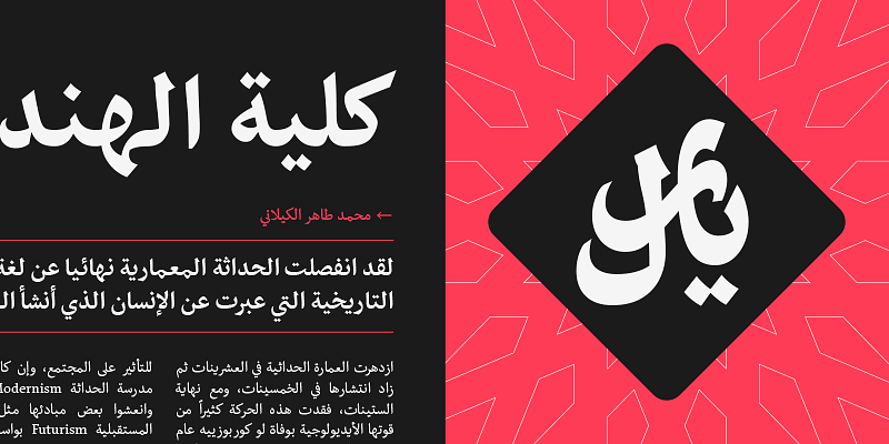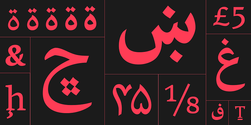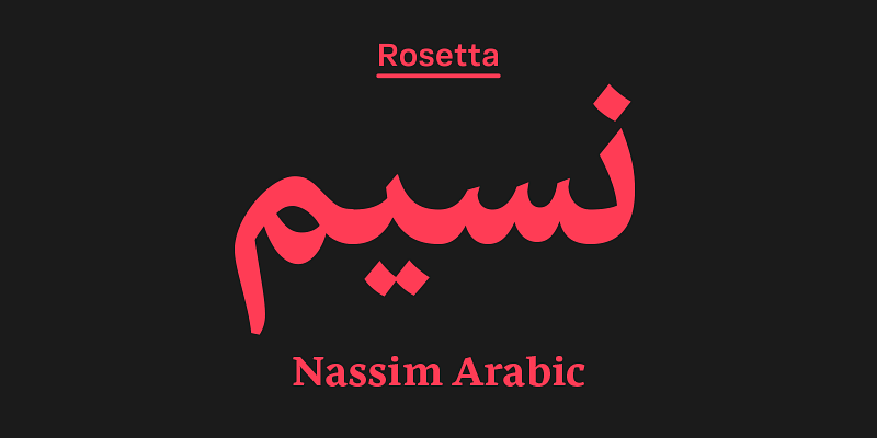 Nassim Arabic is a contemporary typeface for multilingual text-setting, with a lively texture and balanced rhythm in Arabic paired with a finely harmonized Latin.