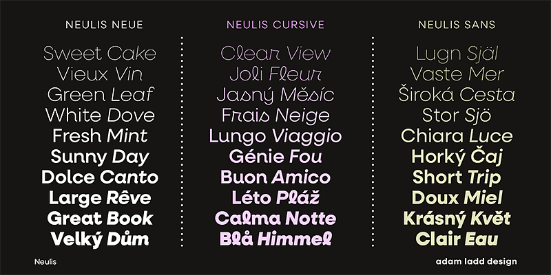 With an emphasis on typefaces designed to be useful and unique, Adam Ladd crafts fonts with a diverse appeal that ranges across modern and vintage aesthetics in sans serif, serif, and script styles. His experience as art director at two of the most revered design publications — HOW and PRINT magazines — informs his work as a type designer. Individuals and large companies in many industries have licensed his fonts, including Disney, Whole Foods, Blizzard Entertainment, and Penguin Random House.