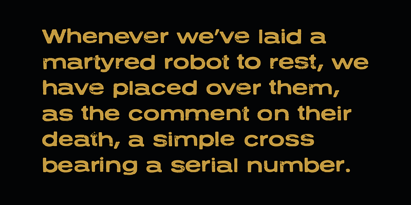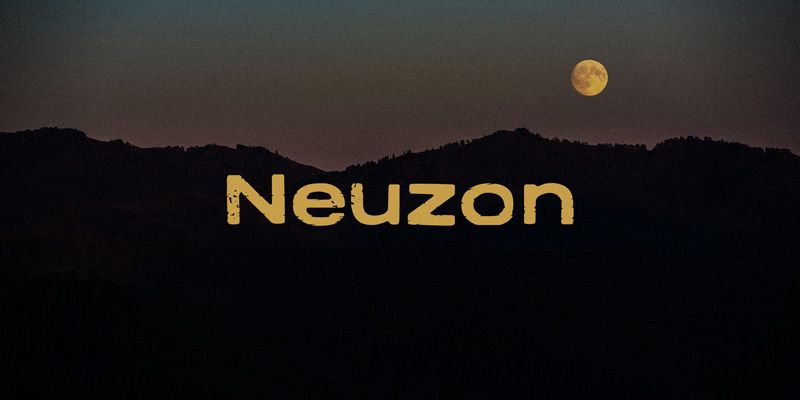 Neuzon is an inky, textured font based on an old metal type called Tempo Bold Extended. In OpenType savvy applications, letter pair ligatures help break up the monotony of obviously repeating letters.