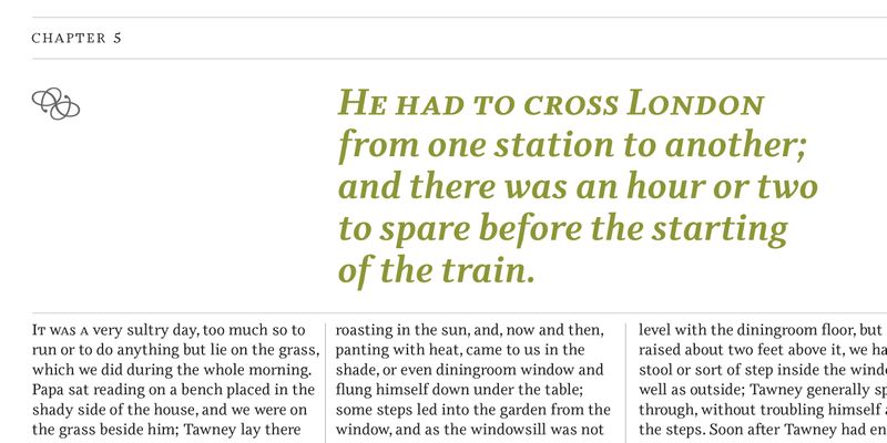 The six optically balanced weights range from the delicate Light to stark Black, accompanied by display variants with flowing flair and ardent ornaments. Two sorts of Initials, one amplified with interweaving swashes, the other more restrained, both are clearly derived from the Upright Italic. The gracefully serif-ed type harmonizes perfectly with Elido, Odile’s sans serif companion.