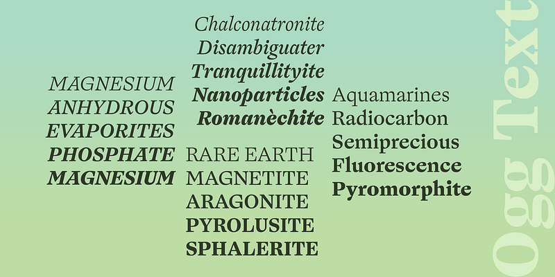 Ogg Text is the complementary text face of Ogg, the seminal display serif by Lucas Sharp inspired by the hand lettering of 20th century book designer and calligrapher Oscar Ogg. Ogg Text infuses the signature calligraphic styling of its predecessor with new and old transitional and oldstyle text face models. Signature moves found throughout Ogg’s calligraphic works were explored, exaggerated, and refined in the high contrast design space of Ogg. The original lettering samples are a combination of calligraphic stroke, contour drawing, and white-out (reduction). This combination of calligraphic and constructed forms became the perfect jumping off point for typographic exploration.