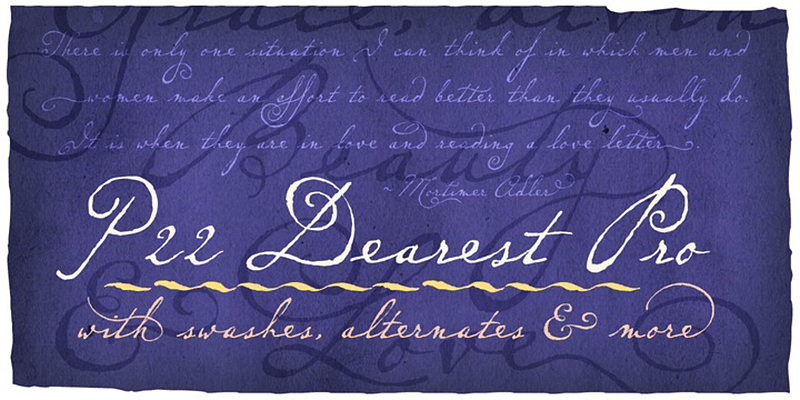 P22 Dearest is a flowing script based on a handwritten 19th Century German book chronicling a history of the Middle Ages.