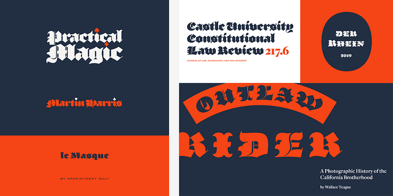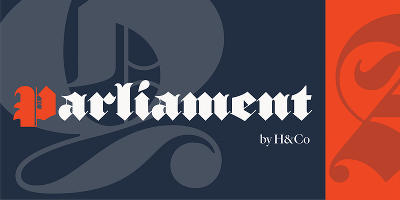 The Parliament typeface was designed by Jonathan Hoefler beginning in 1995. Contributions were made by Andy Clymer, Sara Soskolne, Troy Leinster, Colin M. Ford, and Jordan Bell. A burlesque typeface in the Regency Blackletter style, Parliament was inspired by the ‘Four-line Pica Black No. 1’ typeface of William Caslon Jr (1821), whose enigmatic design for the letters E, G, I, N, V and Y hinted at a broader ambition to modernize the arcane shapes of the gothic alphabet’s capital letters. Parliament completes this project for the first time by including two sets of alphabets, one archaic and one modern, along with a third set of ‘small caps’ that restores to the blackletter the versatility of Roman type. Parliament was first used for the 1998 ATypI Conference in Lyon, and was published by Hoefler&Co in 2022.