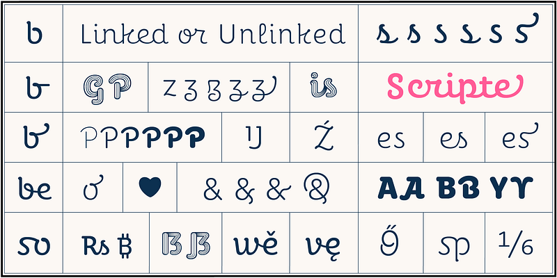 With a serene air and a hint of nostalgia, Perec Scripte is a vertical script font with a delicate persuasive tone. It comes in two styles: Unlinked (1) and Linked (2), both declined in six comprehensive weights including numerous contextual sorts, ligatures, alternates, swashes and more. Although conceived as a display font, it can be used in short text pieces, especially the Light, Regular and Medium weights. A third style of the family is Perec Scripte Deco, meant for greater graphic impact, ideal for titles, signs and unique logos. Perec Scripte Deco has three carefully hand-drawn stripes that flow throughout the alphabet giving a subtle sense of volume and creating a unique word appeal. Perec Scripte is part of the Perec superfamily, made as a tribute to the genius of Georges Perec, a singular writer of the 20th century. All Perec styles can be used together, judiciously, to achieve editorial pages rich in expression.