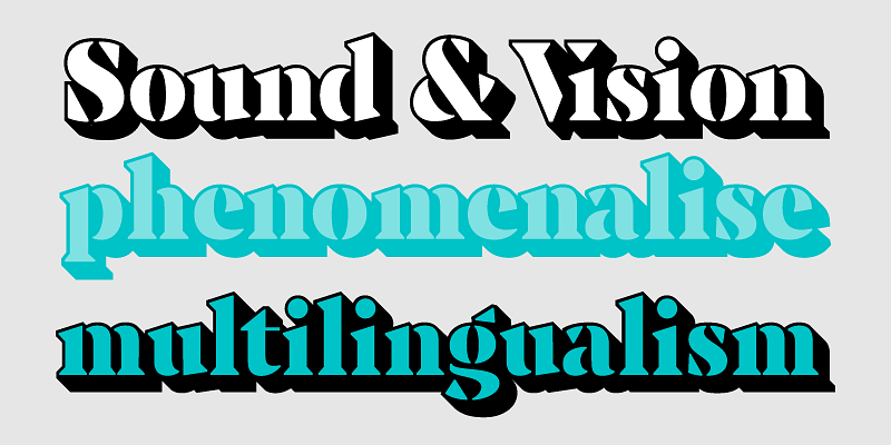 This typeface comes in 4 styles including two versions for making 3D layered stencils with different shades of grey or colour for each layer. The 3D layers have been reworked to ensure sequential letters without breaks, by eliminating the inter-character white space that usually builds up inside the shadow, making room for an even flow which is determined by the upper and lower part of the letterforms.
