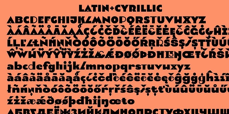 Pilar, a geometric sans serif, has been designed for large display purposes. It is a contemporary reworking of the typography of European art déco. The first version of this typeface was drawn by Yury Ostromentsky for the headlines of Bol’shoy Gorod (Big City) magazine in 2012. The typeface now has four stylistic sets, with four sets of alphanumeric glyphs, one default and three alternates. Every letter comes in four different designs. The four sets are called: Regular Open, Wide Closed, Narrow and Wild. With this variability, one and the same word or phrase can be given a different look while remaining within one graphic system.