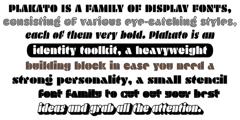Plakato is a small family of happy, no-nonsense display fonts that you call for help when your message needs to be heard/seen.