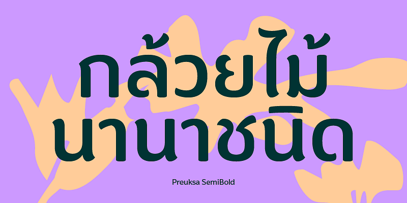 Prueksa’s latin character set is an Organic Sans Serif designed to strike a balance with the Industrial Sans Serif and add diversity to Cadson Demak’s Latin typeface collection. Additionally, a Thai loopless typeface set was added, originally named “Amino” before being developed and renamed to Preuksa in 2022. It comes with alternate characters to accommodate various applications and offers a family of 9 weights and 9 styles for users to choose from.