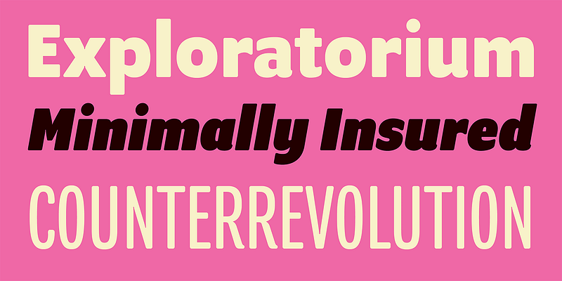 Program has four weights, while Program Narrow has three. Instead of matching the overall “color” in text settings between the Program and Program Narrow versions, as is often done, the stem weights were matched. This allows for a more comfortable matching of stem weights when combining the two versions at larger sizes on posters or in headlines.
