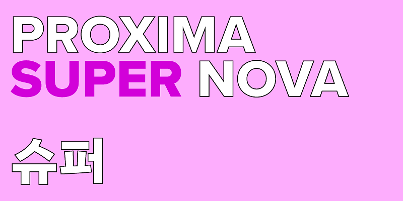 Proxima Nova Hangeul (2024) was designed by lo-ol Type Studio for the Proxima Super Nova collection. Hangeul—the alphabet used for the Korean language—is structurally larger than Latin, requiring adjustments to visually align with the original and maintain the distinctive script’s integrity. Also important is balancing grotesque and geometric details to capture the essence of Proxima Nova. Available in 8 weights—Thin to Black—this growing family is ready to become even more popular worldwide.