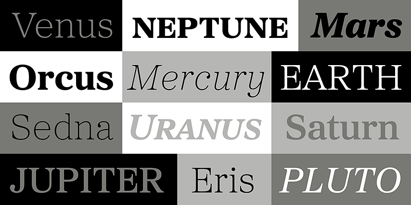 Proxima Sera (2022) answers the question that designers and typographers have asked for more than fifteen years—what serif typeface should I pair with Proxima Nova? Proxima Sera is a hybrid design, combining characteristics of old style and modern serif typefaces into something new that is clean and highly readable. While its proportions and range of weights are designed to harmonize with Proxima Nova, it stands alone just as well. Its even color and large x-height make it a logical choice for text settings, but Proxima Sera still has enough warmth for display use—especially Thin and Black. Try those in headlines, posters, or anywhere else you need to bring some fresh personality.