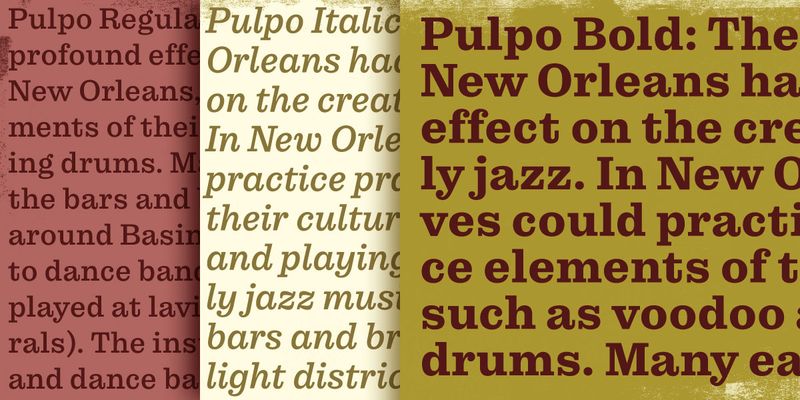A friendly and comfortable looking typeface inspired by Century Schoolbook and Clarendon. Massive body very suitable for running text on print as well as on screen. Longer extenders give text a bit more air to breathe and improve legibility in small text sizes. Bolder weights have strong headline qualities. The familiarity of the letterforms conceals some nostalgia and makes it a good choice for food and lifestyle themes and for everything that was better in the good old times.
