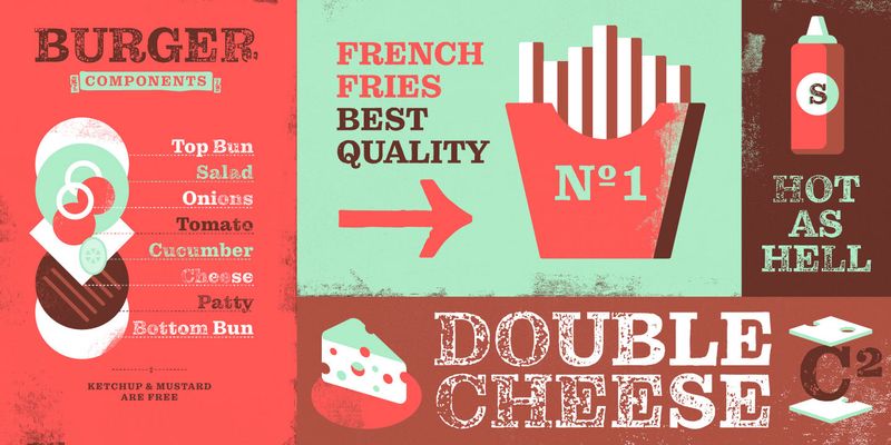 Pulpo Rust digitally simulates a handmade woodprint. For each of the 560 characters, the font offers four different qualities of print and gives you the opportunity to create a vivid typography according to your own visions. To create the fonts, 193 glyphs were manually cut into five wooden plates and carefully printed by hand. From countless test prints, the most charming four were digitized to create the different styles.