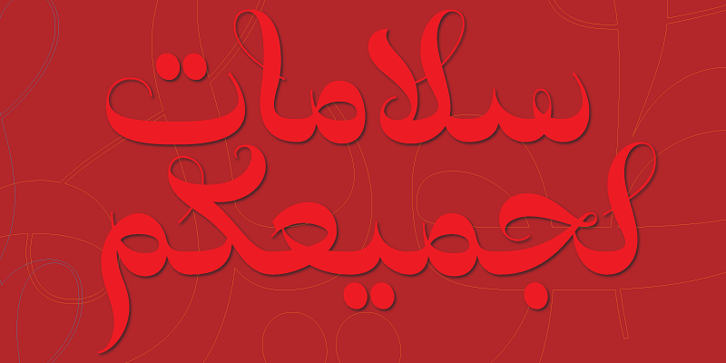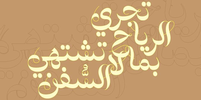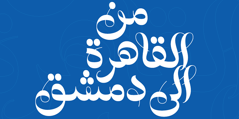 Qasida is wild, free and full of wonder, a full expression of the kind of Ruq’ah style found on classic hand-lettered playbills, book covers and film titles. Use it alongside Latin faces of the high-contrast variety.