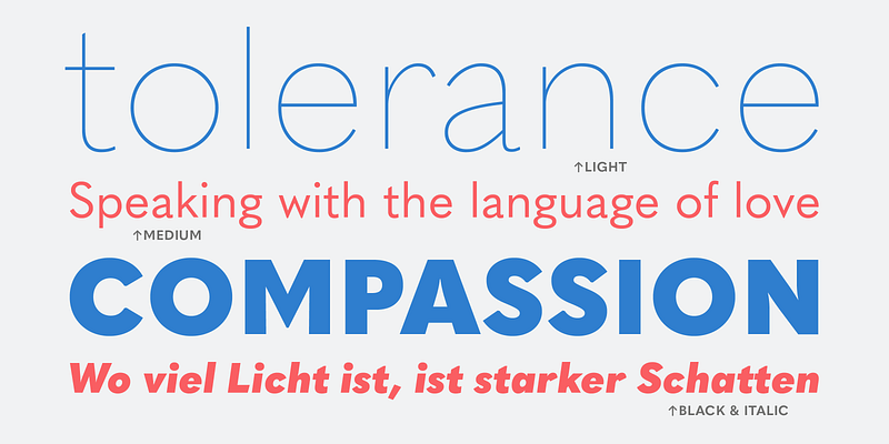 Quasimoda is the “almost fashionable” sans. It follows the current trends but does not completely give into them, retaining classical proportions and the slight ugliness of the 19th-century grotesques. Quasimoda is a versatile beast!