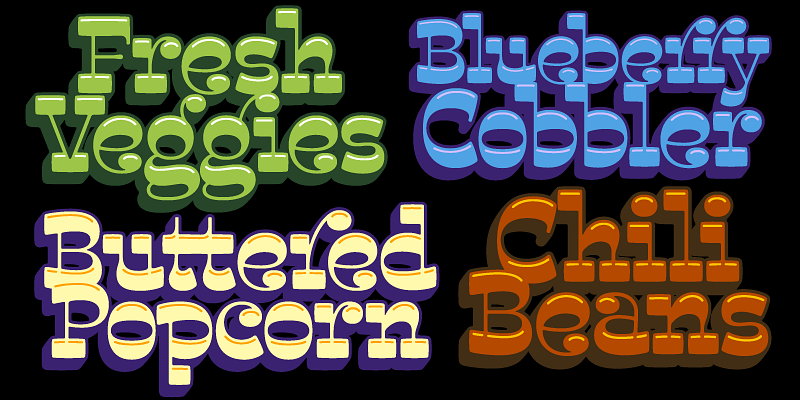 A uniquely sunny and wholesome take on the reverse-stress slab where plenty of unusual elements work hard in the background. Ball endings harmonize with thick soft rectangles, diagonals cut light into thick softnesses, eager open midsections guide the eyeballs, strokes thicken into curled serifs just short of swashing out, and giddy extenders bop along to a quirky beat.