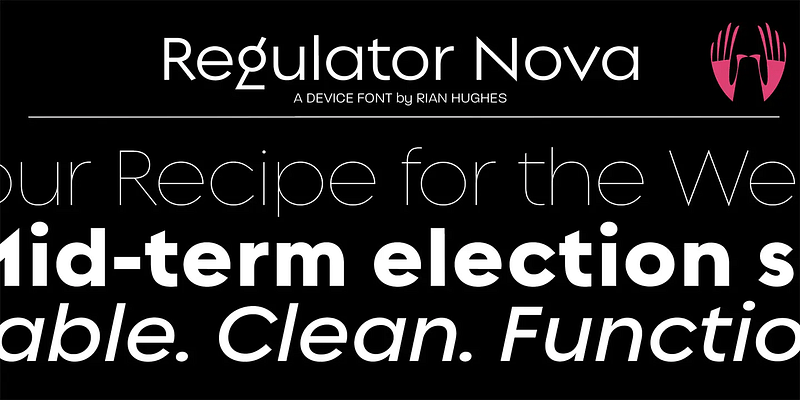 A versatile family with proportions that echo early sans such as Gill or Futura. A large lower-case x-height makes it very readable at text sizes. An alternative (though less unusual) “g” is an OpenType option.