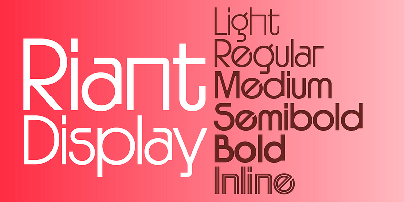Riant Display takes cues from early 20th-century geometric sans serifs, reinterpreting them with a playful, contemporary spirit. During this era, pure forms—circles, squares, and triangles—dominated architecture, industrial design, and typography. Letterforms based on these fundamental shapes embodied the spirit of a new era that pushed the boundaries of letter design principles. Built around dynamic curves and rhythmic contrasts, Riant Display celebrates the unexpected. High-waisted s forms, and folded finials on letters like f and t add a distinctive personality to the animated texture of Riant Display. OpenType features offer a playground of variation: randomized alternates for letters like a, b, d, g, p, q, plus options for stemmed or rounded styles, inviting endless experimentation and tailored expression. Riant Display’s expressive form and harmonic proportions make it perfect for striking headlines, editorial layouts, branding, and anywhere typography takes center stage.
