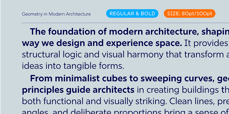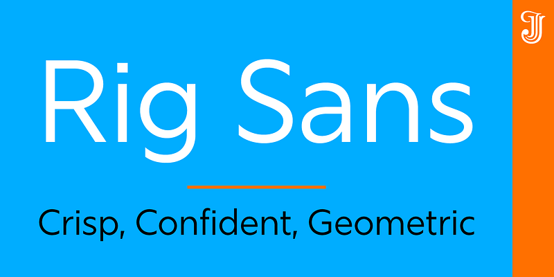 Rig Sans is a streamlined geometric typeface, which speaks in a confident, affable tone. Its open, clean structure lends text a neutral, transparent quality.