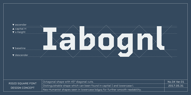 Very geometric shape but designed especially for body text, long sentence such like a mechanical instructions.