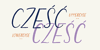 Features: Case selection switches the character sets. Additional bonus glyphs accessible through the glyphs panel.