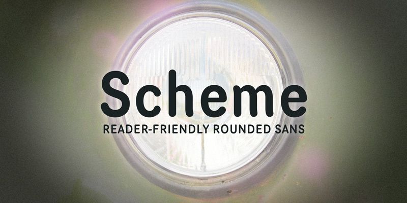 Scheme is a creamy sans-serif typeface. Lively curls and waves make Scheme feel less technological, and more chummy.