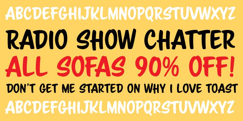 A Jukebox original, Scriptorama Markdown mimics the bold, in-your-face lettering typically painted on big windows or storefronts. It is lively, self confident and perfect for a variety of uses.