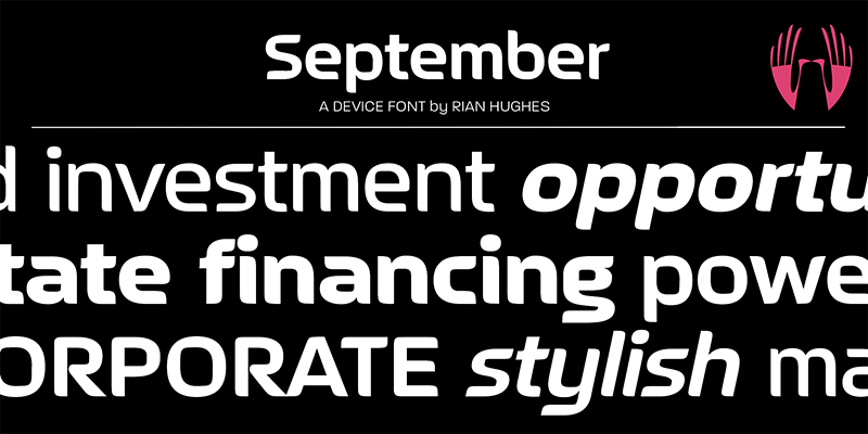 A strong, corporate family that also suggests an approachable professionalism, September is a simple three-weight core family plus italics.