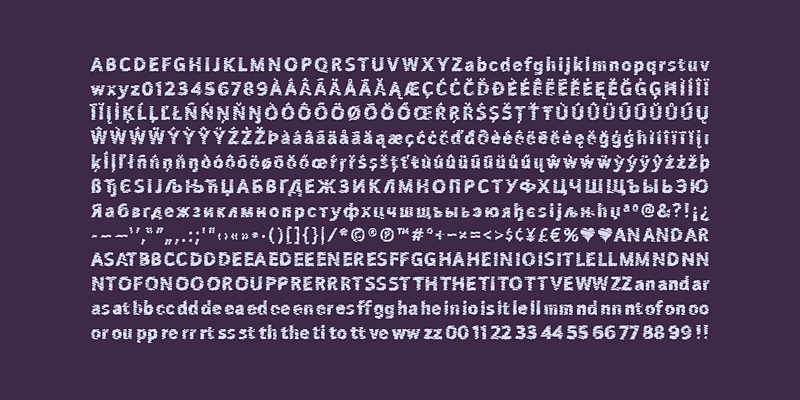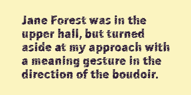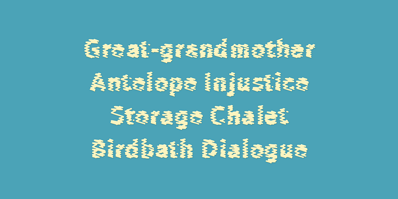 Sewn is a mechanically embroidered typeface. Letter pair ligatures help break up the monotony of obviously repeating letters.