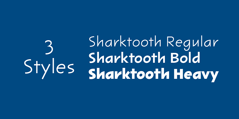 Sharktooth (2000, 2003) began as an attempt to turn Felt Tip Roman into a “real” typeface. My approach was to take the essential underlying forms of Felt Tip Roman and rationalize them into regular typographic forms, simplifying and stylizing a subset of the existing shapes. In the end, only glimpses of Felt Tip Roman remained, and Sharktooth turned out distinctly different from its source. As a text face, it has a lively texture and is quite legible. The name comes from the sharp, angular shapes seen in many of the letters.