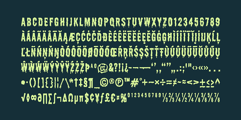 Shlop is a wicked, oozing horror font. Check out Shlop’s shloppy brother, Shlop Shloppy. He’s like Shlop but with more shlop.