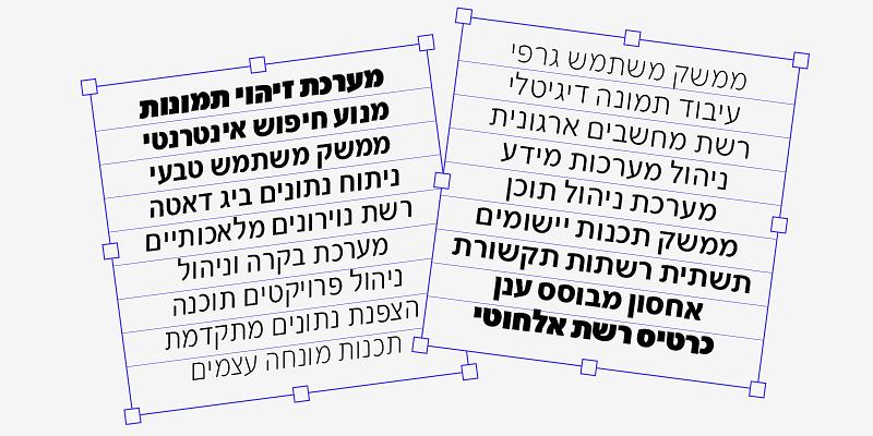 Fonts in the Adobe Fonts library include support for many different languages, OpenType features, and typographic styles.