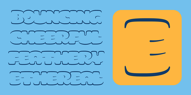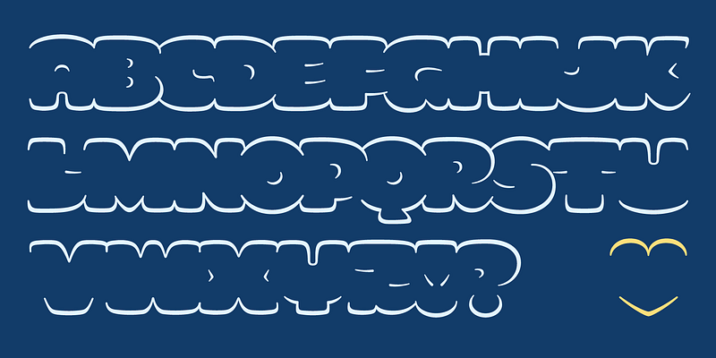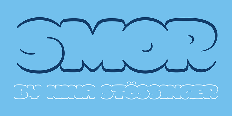 SMOR is a cute and cartoonish outline typeface designed by Nina Stössinger that aims to connect top and bottom profiles of letters into bubbly words while omitting their side profiles almost completely. This all-caps display design is great for typesetting ultra bold letters while still feeling weightless. SMOR is inspired by graffiti throwups — their speedy, gestural shaping and the idea of defining words through their outer silhouettes, rather than internal structure, strokes, skeletons (as commonly suggested by the calligraphic legacy in type design)… or even separated letters. Nina came up with first sketches for SMOR in Kel Troughton and James Plattner’s “Graffiti Concepts for Type People” course, and continued to refine and expand the design over the following months. Use for adorable & fluffy things, and set large.