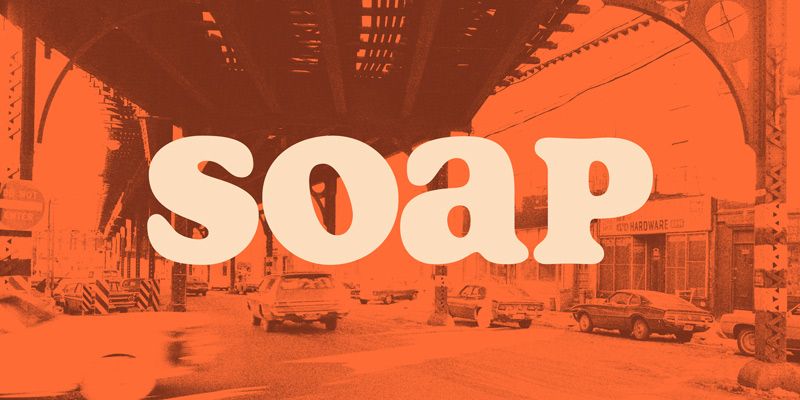 Soap is a captivating unicase headliner which looks like Cooper Black but even smoother. It’s spaced really tightly, and the bumps have been sanded all the way down.