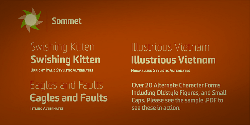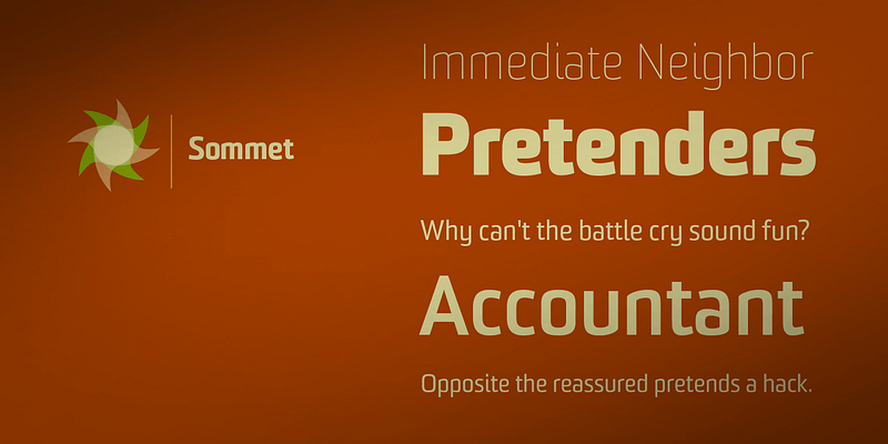 Sommet is a powerful sans-serif with a high-tech feel, a tall x-height, compressed letterforms and six weights.