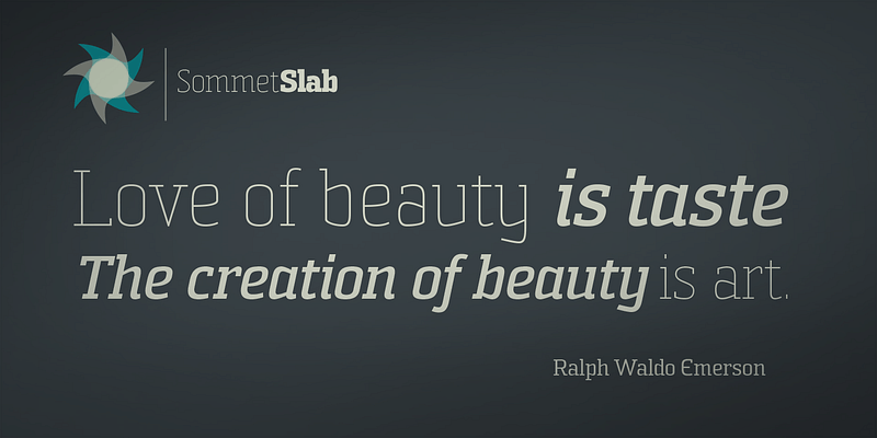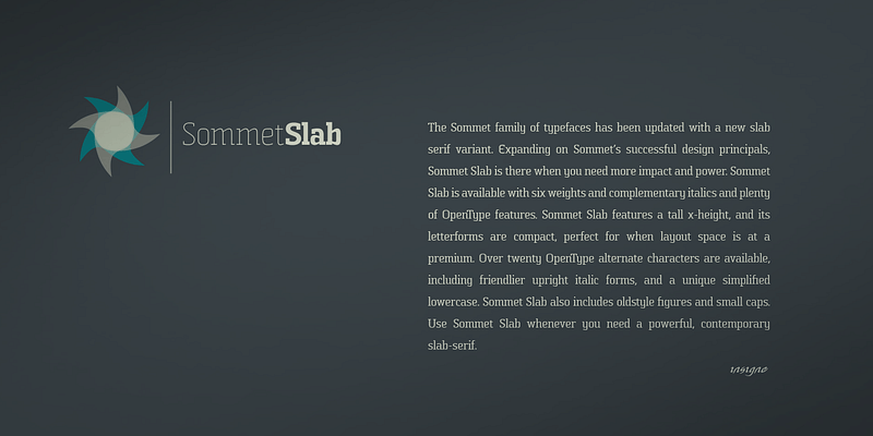 Sommet Slab features a tall x-height and compact letterforms.